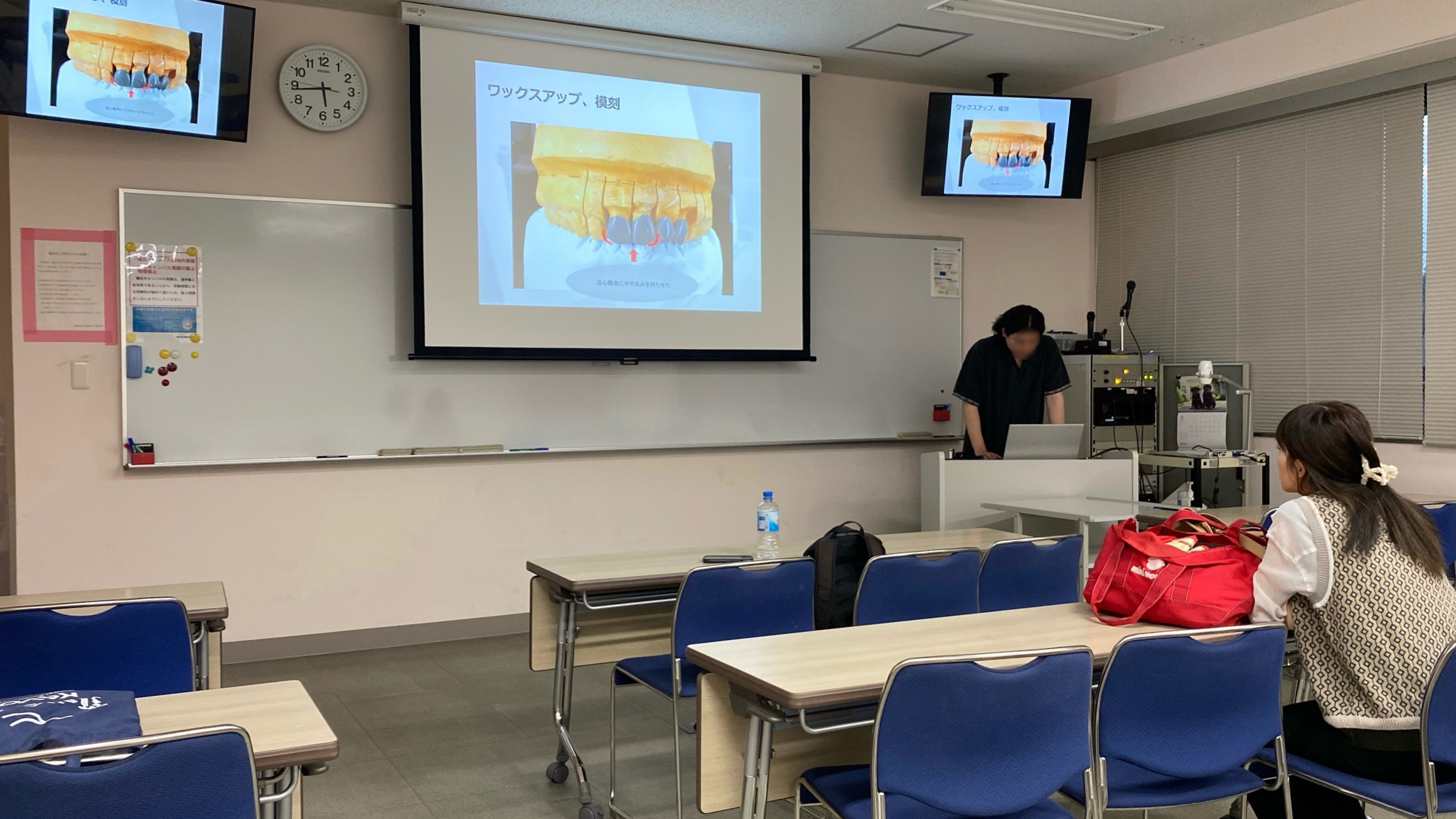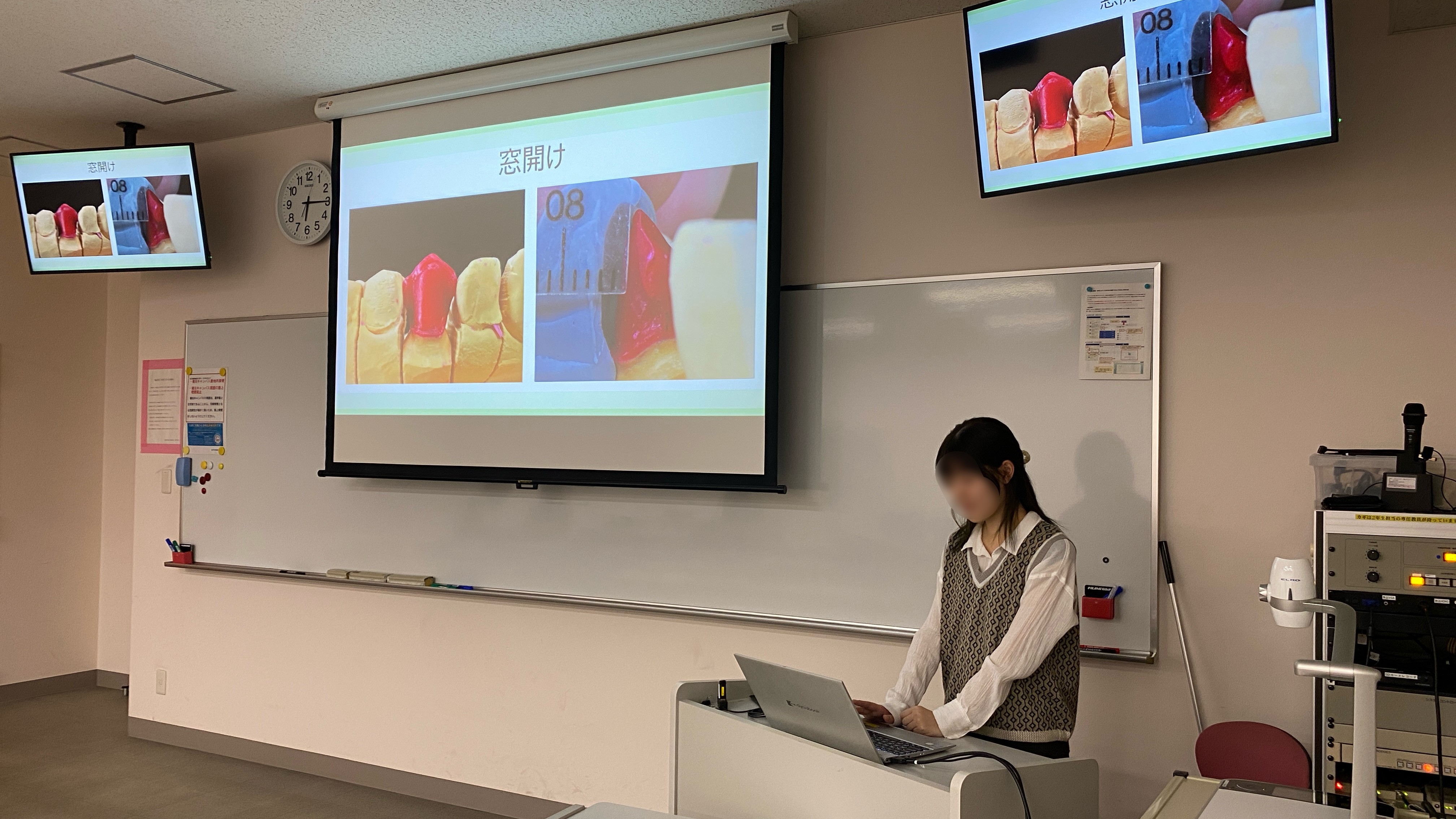 臨床技工実習で学んだ製作上の注意点や工夫点などをまとめたプレゼンテーション後、専任教員・専修科の学生からの質疑応答を行いました。
