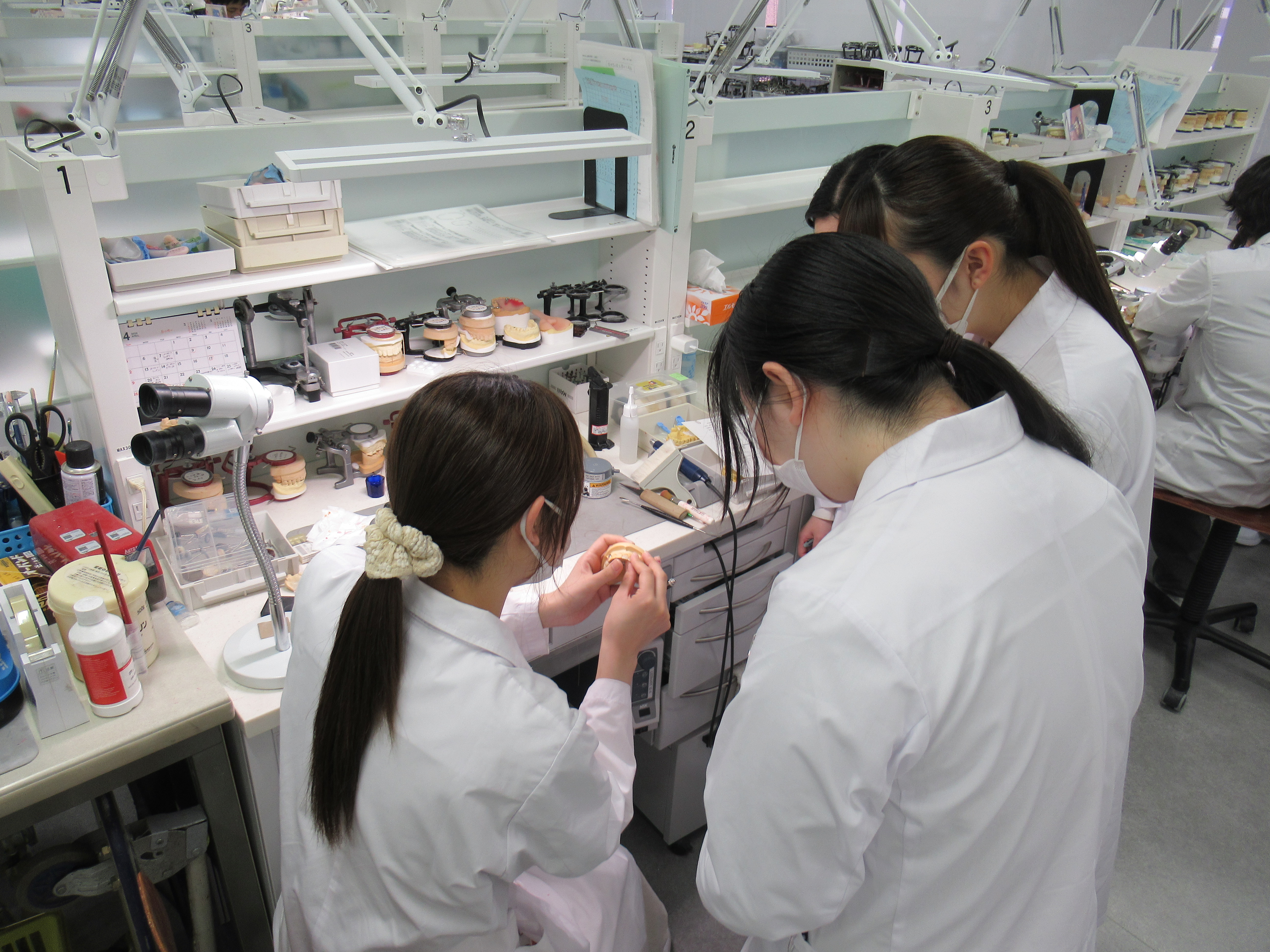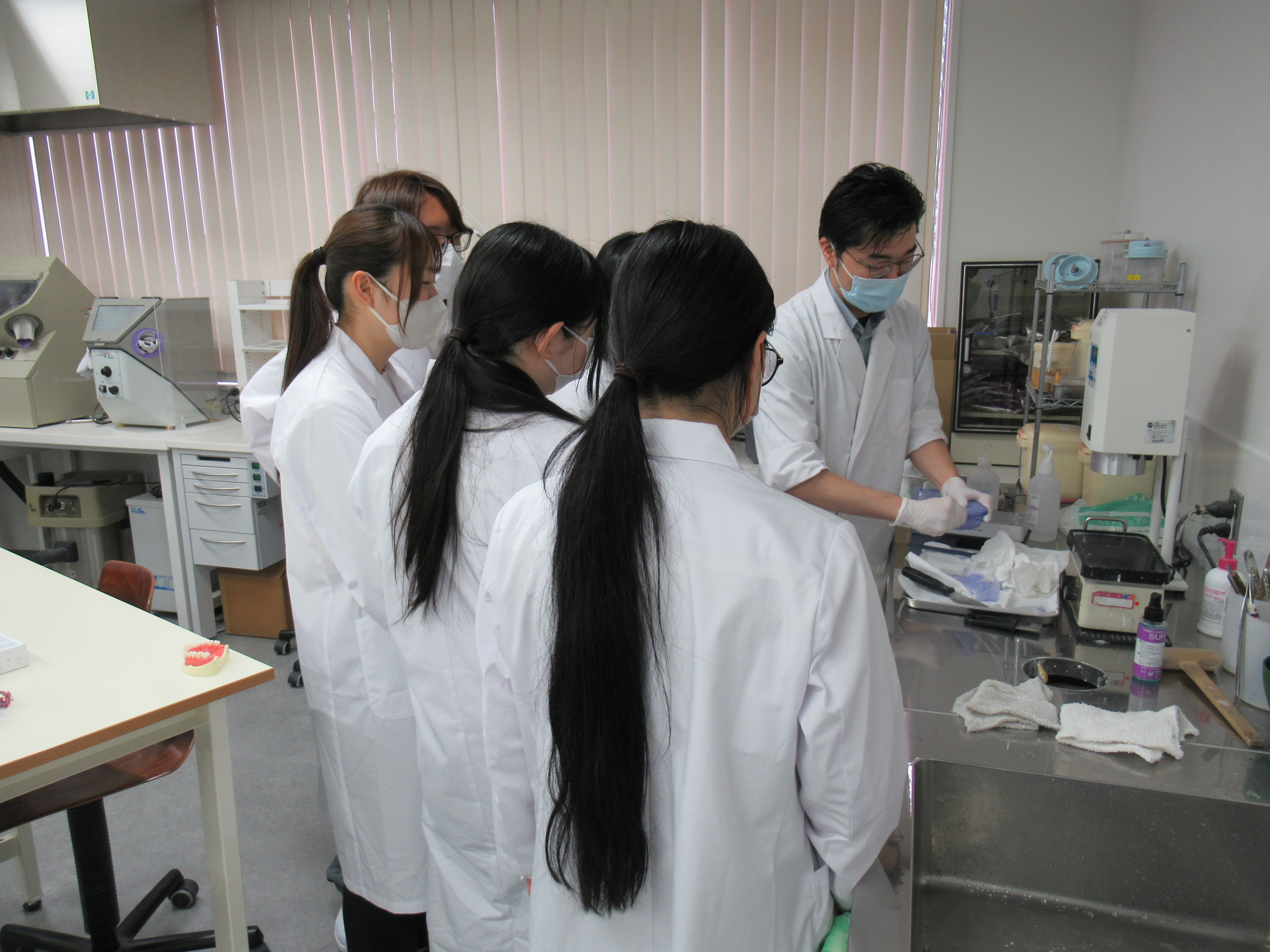 1日目は横江技工士長より、歯科技工士の仕事についての講義を受けた後に、技工士が補綴装置を製作している技工部と技工室(専修科)を見学させていただきました。